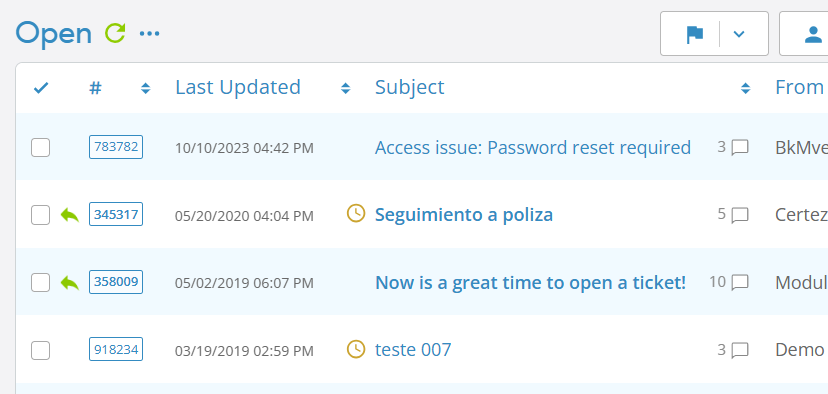 That is why, years ago, I stopped using bold text in osTicket Awesome’s Ticket List and instead used this green icon to indicate that a ticket is unanswered or has a new reply: